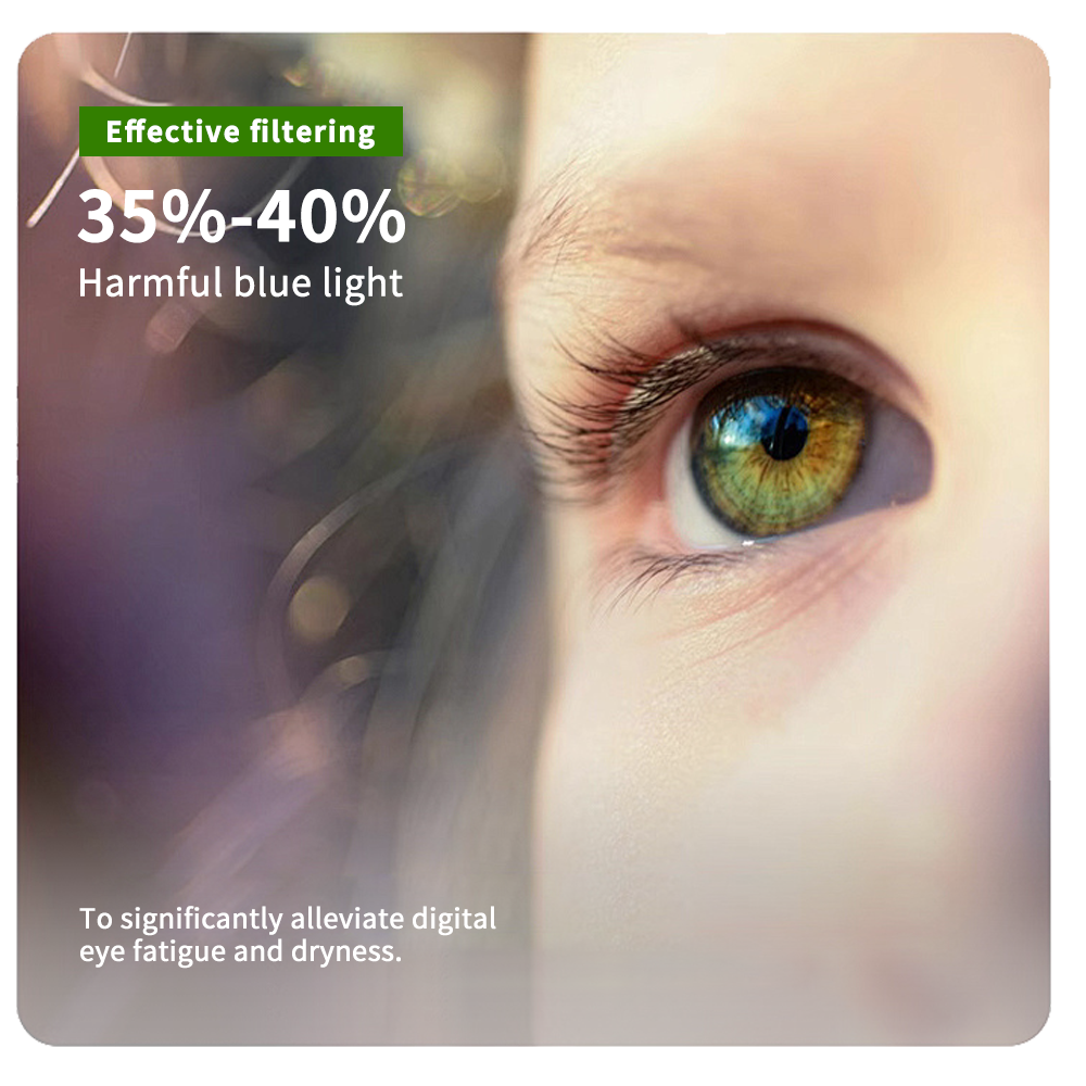 High-Efficiency Filter: Effectively blocks 35%-40% of harmful blue light to significantly alleviate digital eye fatigue and dryness.